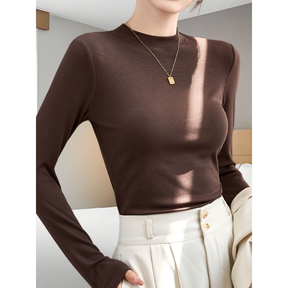 Half Turtleneck Bottoming Shirt Women Velvet Stand Collar Slim Fit T-Shirt