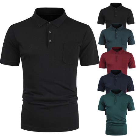 Men's Pullover T-Shirt Youth Solid Color Pocket Lapel T-Shirts