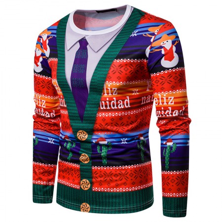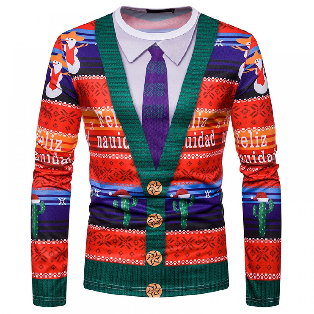 New 3D Personality Printing Fashion Men's Christmas Long Sleeve T-Shirt